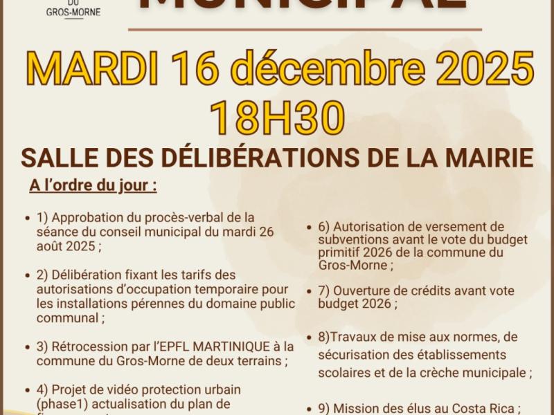 Ordre du jour de la séance du conseil municipal du mardi 26 août 2025 à 18h30